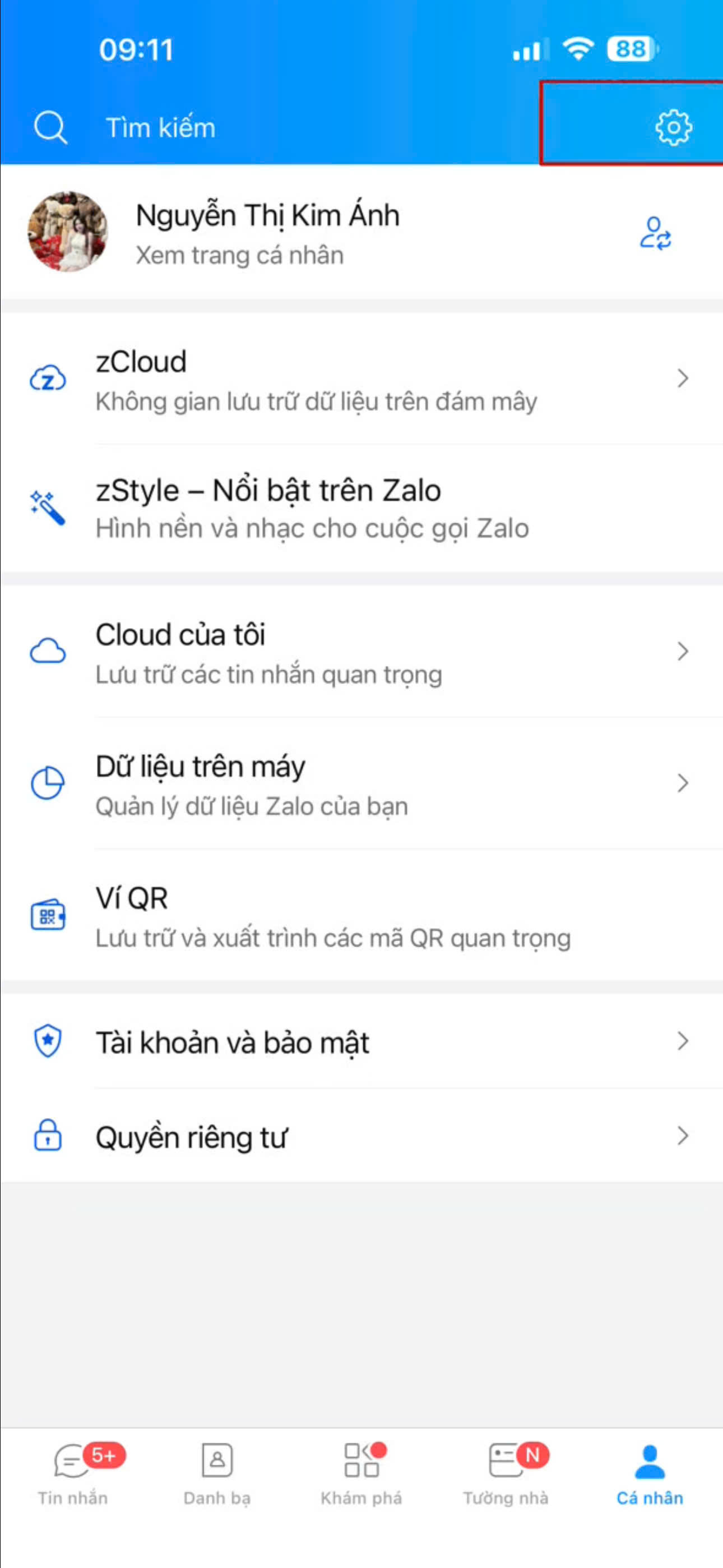- Bước 1: Mở Zalo và vào Cài đặt: Trên ứng dụng Zalo đã đăng nhập tài khoản thứ nhất, bạn chạm vào tab Cá nhân (góc dưới bên phải).