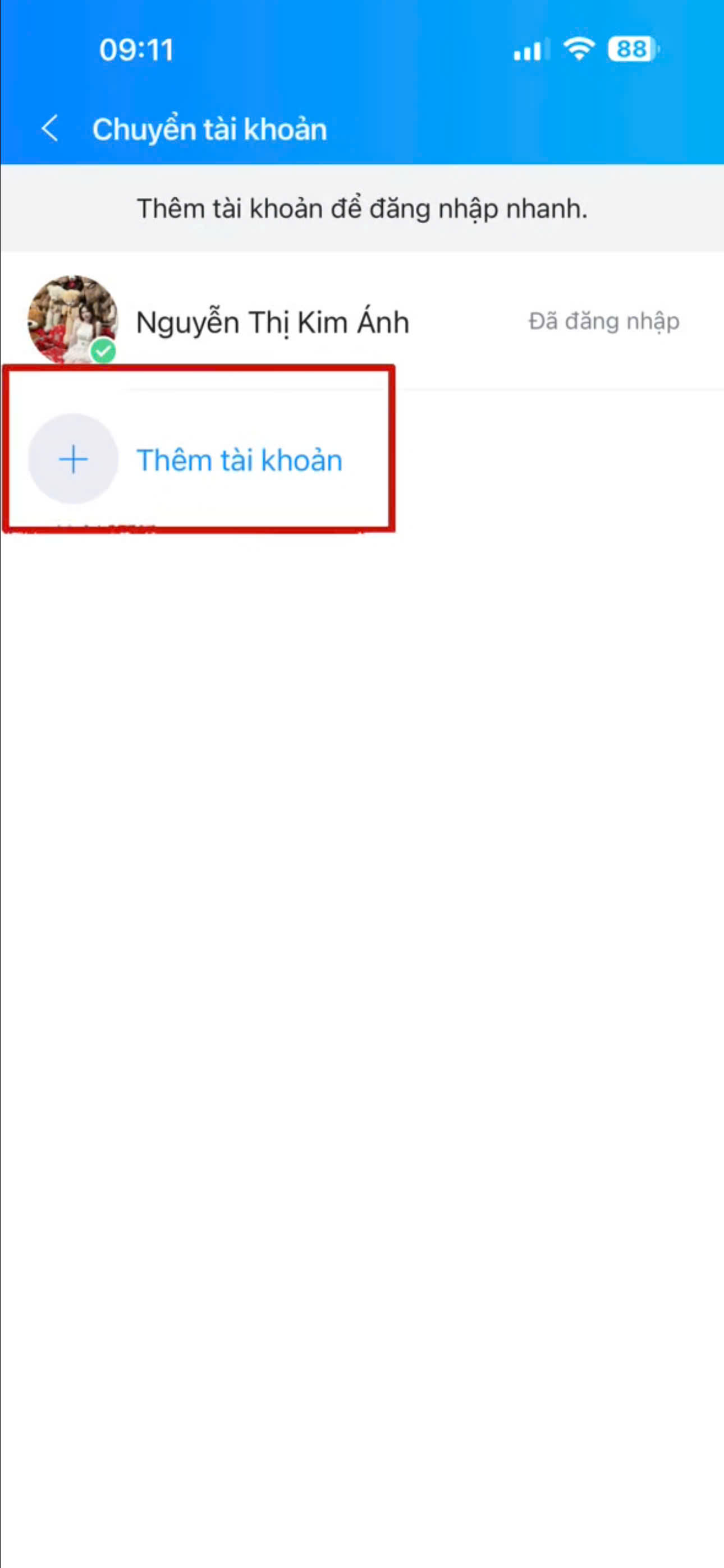 - Bước 3: Thêm tài khoản phụ: Nhấn Thêm tài khoản và đăng nhập tài khoản Zalo thứ hai của bạn bằng Số điện thoại và Mật khẩu.
