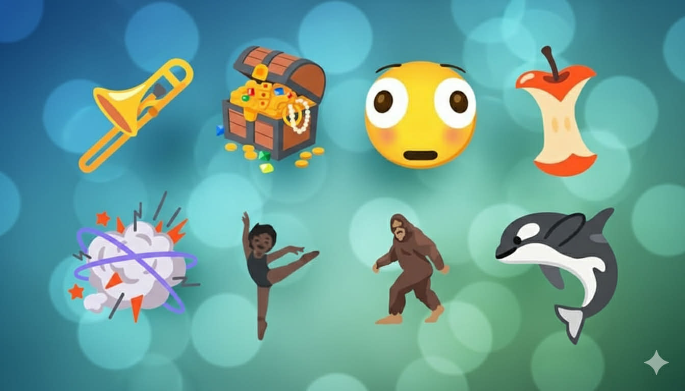 Theo thông tin từ Hiệp hội Unicode (Unicode Consortium), danh sách emoji mới bao gồm: Khuôn mặt bị biến dạng (Distorted Face), sinh vật lông lá Bigfoot/Sasquatch, kèn trombone, rương kho báu, đám mây ẩu đả phong cách truyện tranh, lõi táo (Apple Core), cá voi sát thủ (orca), vũ công ballet và hiện tượng sạt lở đất. Các biểu tượng này phản ánh sự đa dạng về cảm xúc, văn hóa và đời sống, đồng thời đáp ứng xu hướng sử dụng emoji ngày càng phong phú của người dùng.