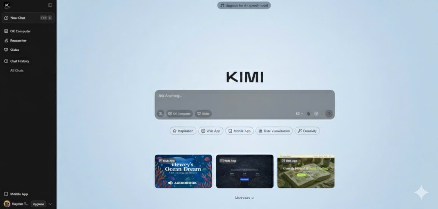 Giao diện chat chính thức của Moonshot, miễn phí và không giới hạn.